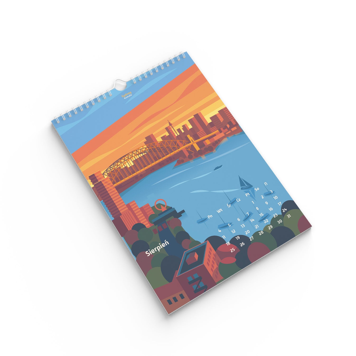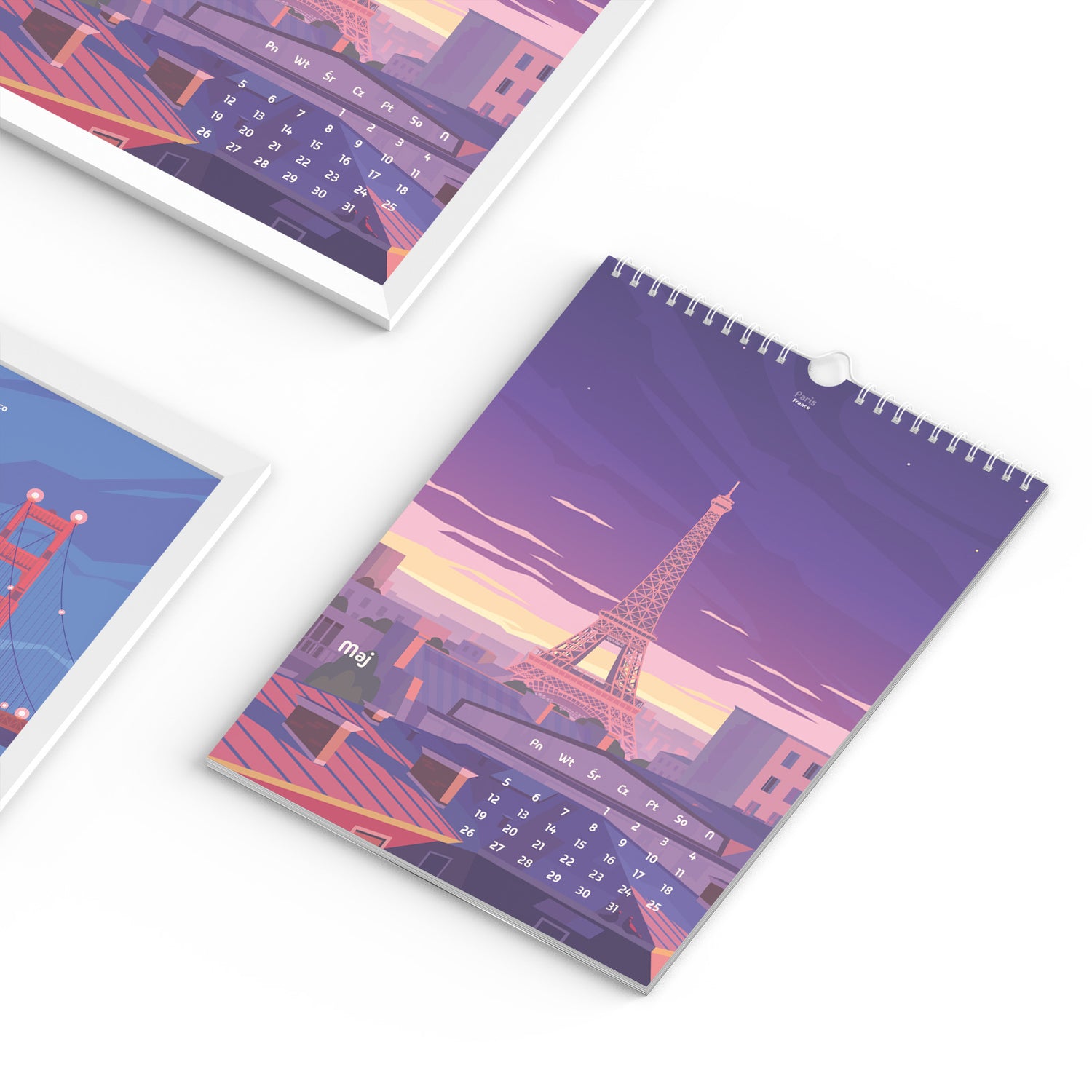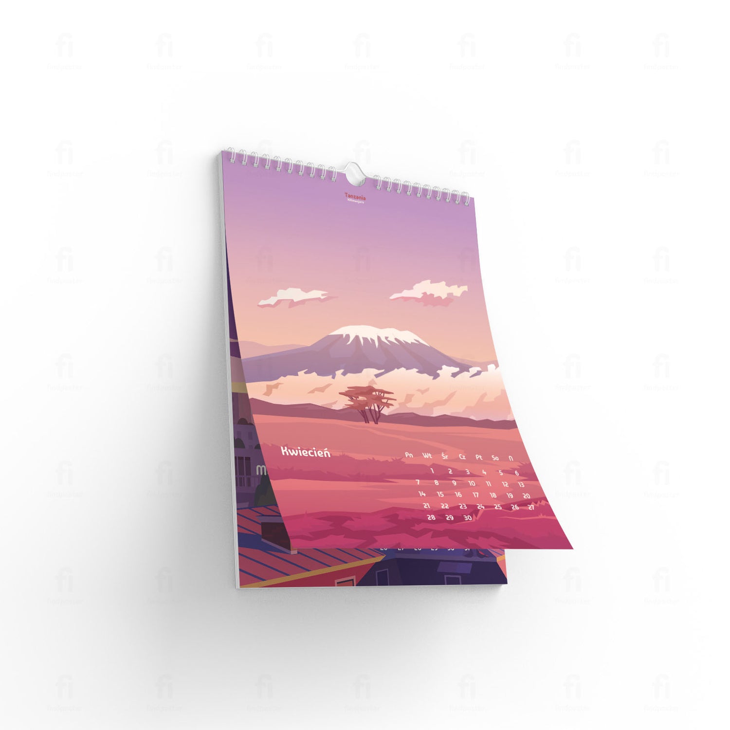 Każdy miesiąc ozdobiony jest autorską ilustracją inspirowaną najpiękniejszymi miejscami na świecie. Zachwycające kolory i szczegółowe grafiki przeniosą Cię w podróż po malowniczych krajobrazach – od egzotycznych plaż, przez europejskie miasta, aż po majestatyczne góry.