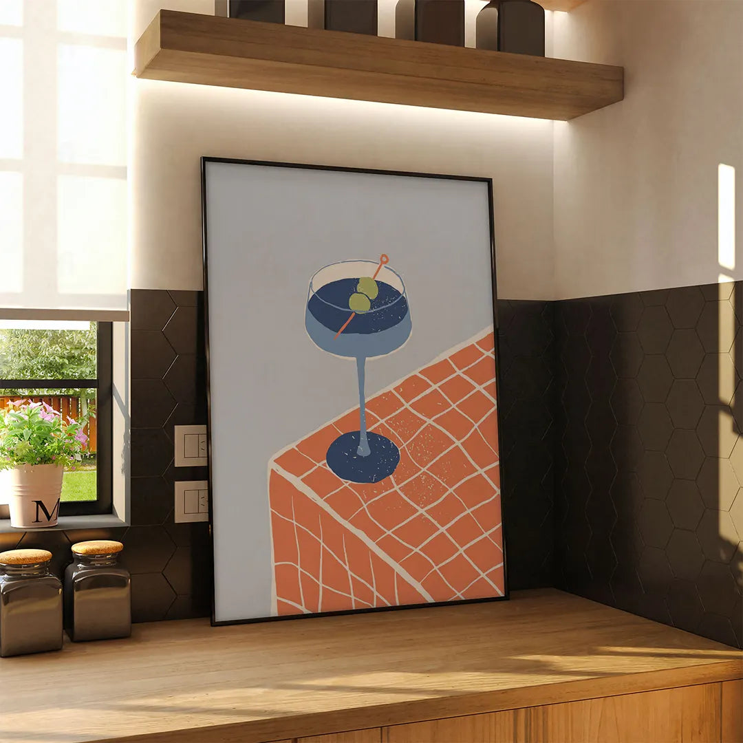 Czas na chwilę relaksu w dobrym stylu! Ta grafika z kieliszkiem martini na tle niebieskiej kratki to kwintesencja elegancji i dobrego smaku. Idealnie pasuje do nowoczesnych wnętrz, dodając im odrobinę luksusu i charakteru.